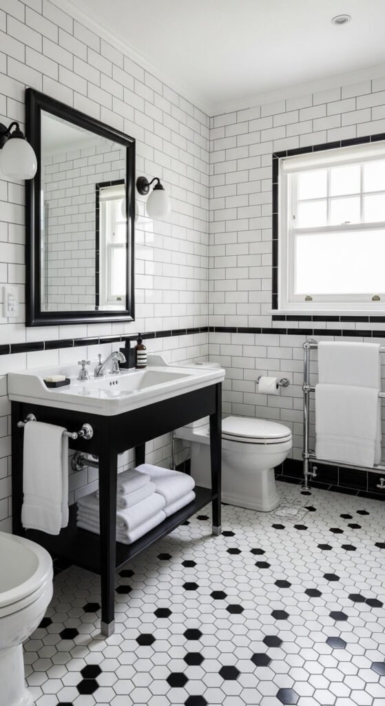 10. Black and White Graphic Bathroom