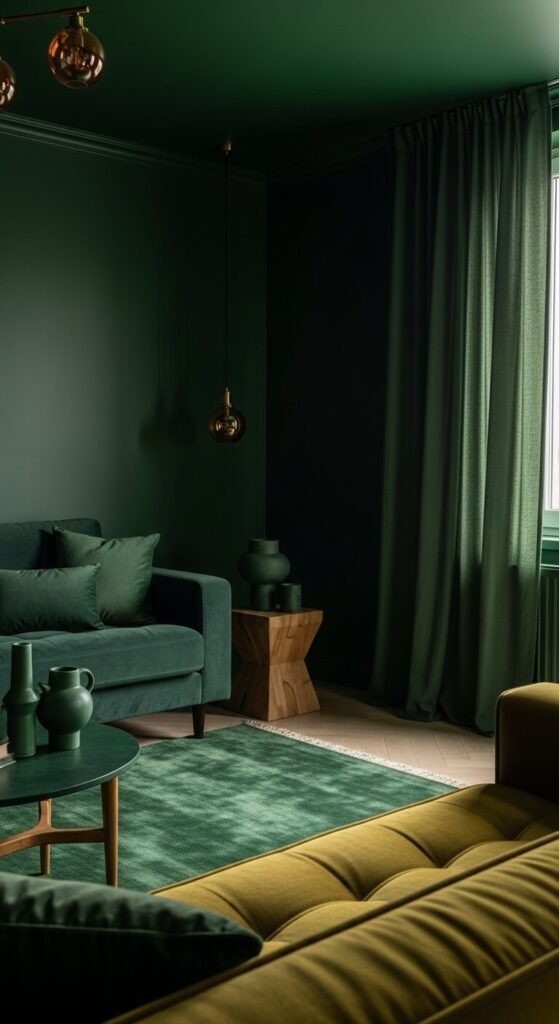 11. Moody Forest Green Living Room