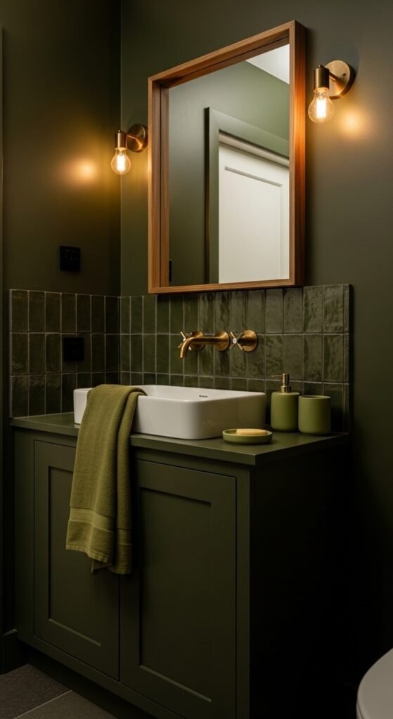 17. Dark Olive Monochrome Bathroom