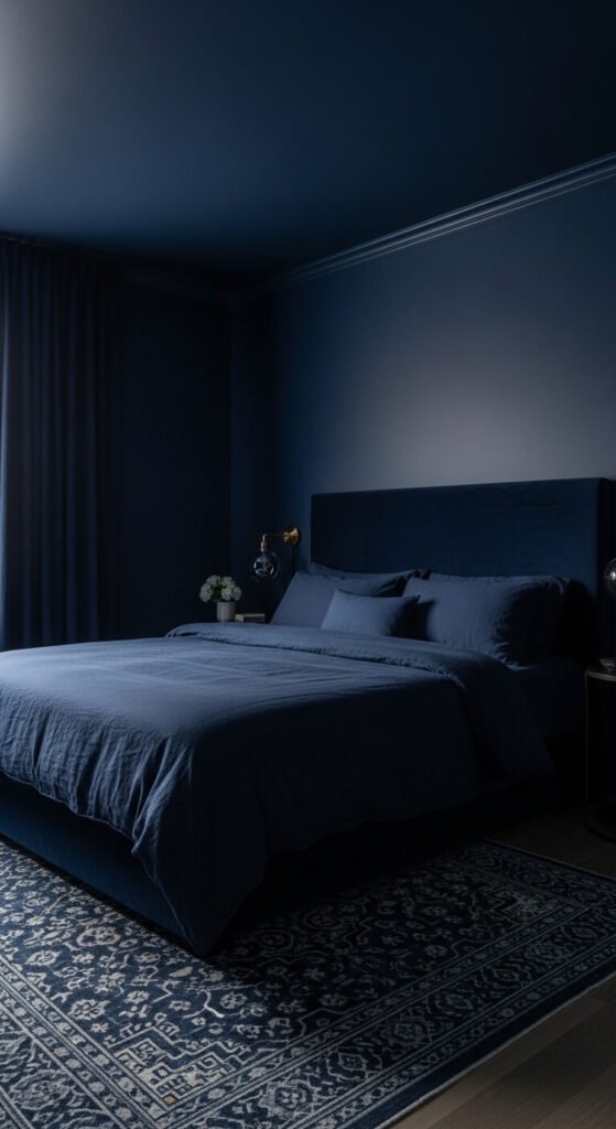 5. Navy Blue Monochrome Bedroom