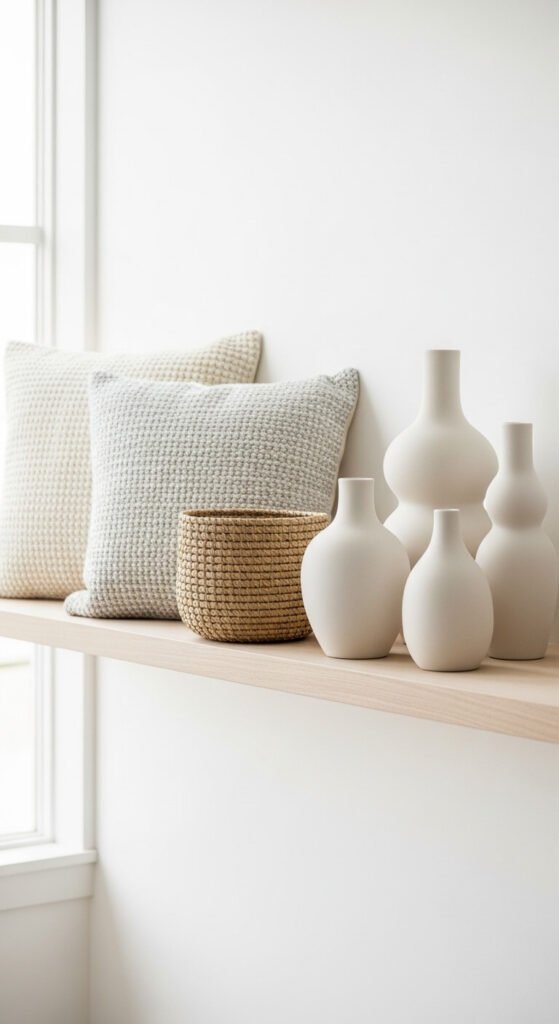 Stick to three items max per surface. One great piece beats a crowded collection. Vignettes should feel curated, not cluttered.