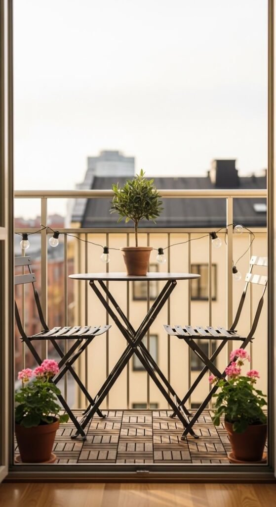 23. Create a Cozy Balcony Patio Setup with Folding Furniture