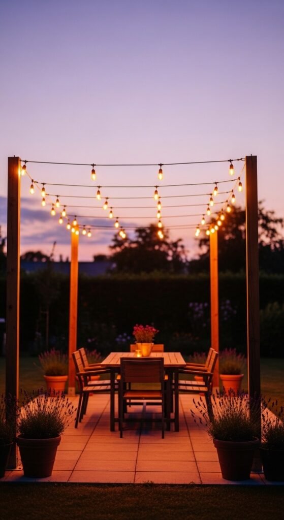 3. Hang String Lights Overhead to Extend Evening Hours