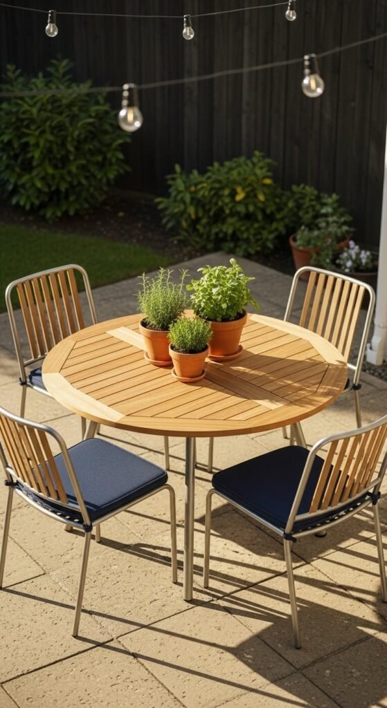 4. Create a Dining Zone with a Weather-Resistant Table and Chairs