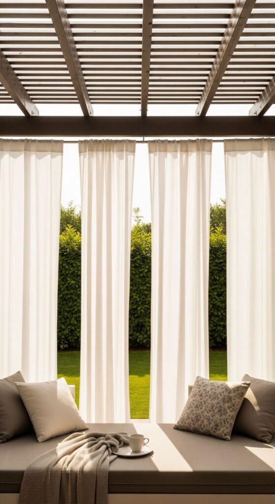 8. Install Outdoor Curtains on a Pergola for Privacy and Shade