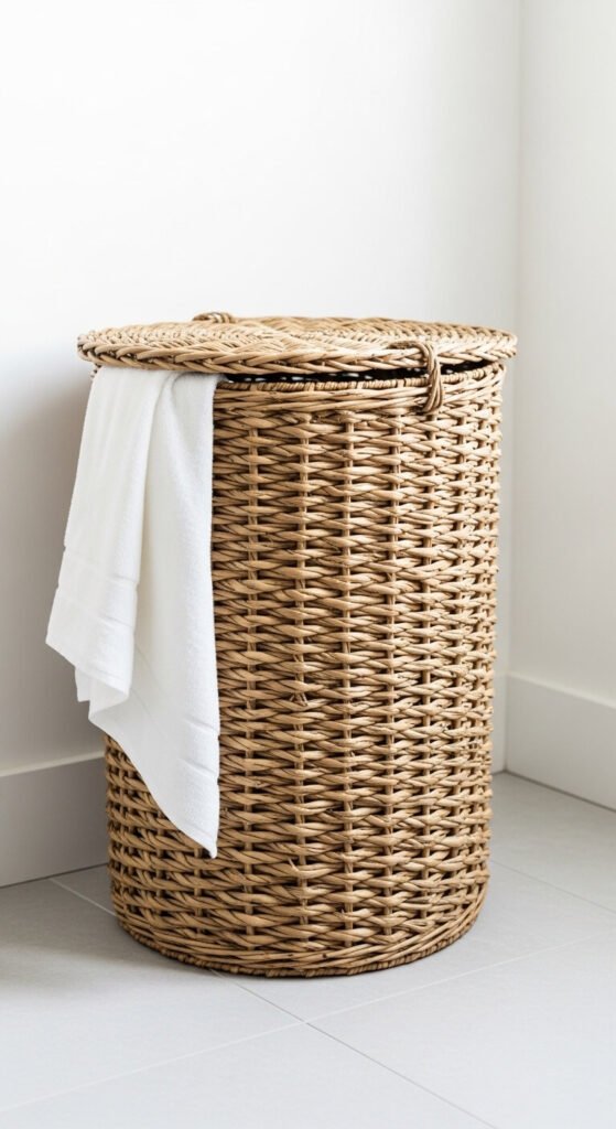 A wicker laundry hamper is one of the most functional pieces of wicker decor in the house. It replaces a plastic bin with something that looks good standing in a bedroom or bathroom corner. Look for hampers with a lid — this keeps laundry out of sight and the room looking tidy. Seagrass and water hyacinth styles hold their shape well and are easy to wipe down. Expect to pay $40–$80 for a full-size hamper. Choose a natural tone that works with your floor color. A wicker hamper earns its place every single day.