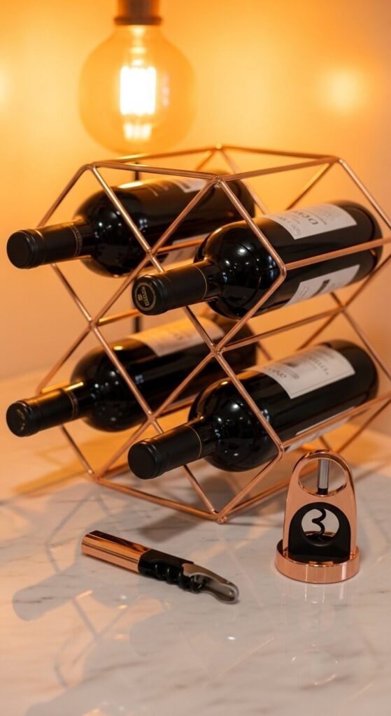 21. Rose Gold Wine Rack or Bar Accessories