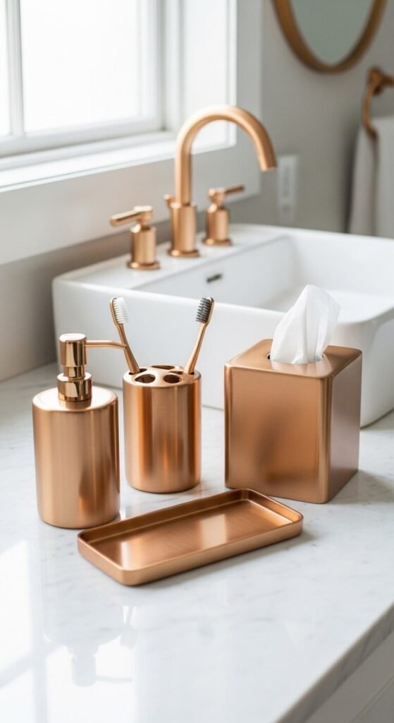 8. Rose Gold Bathroom Accessories