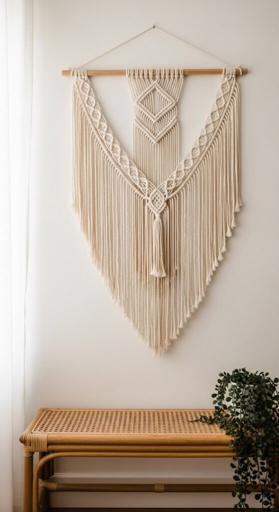 14. Hang a Macramé or Woven Wall Hanging in a Natural Fiber