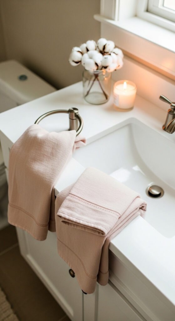 21. Replace Your Bathroom Hand Towels with White or Pale Linen Versions