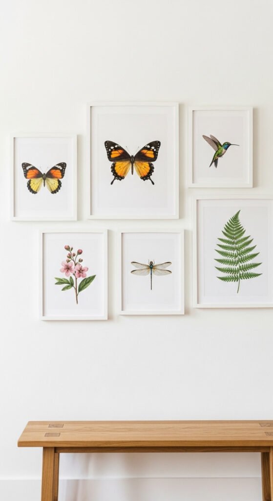 22. Arrange a Butterfly or Bird Art Collection on a Gallery Wall
