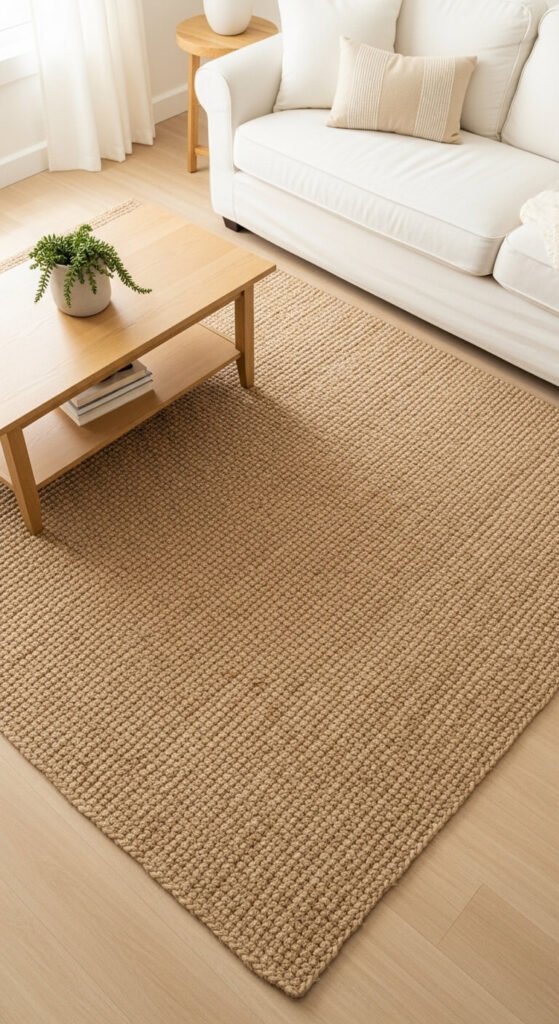 3. Lay Down a Jute or Woven Rug in a Light, Natural Tone