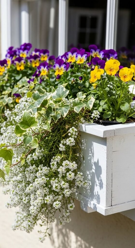 4. Fill a Window Box with Pansies and Trailing Ivy