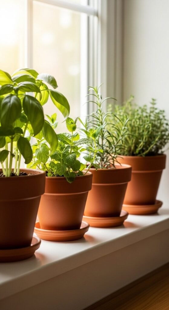 6. Display Potted Herbs on Your Kitchen Windowsill