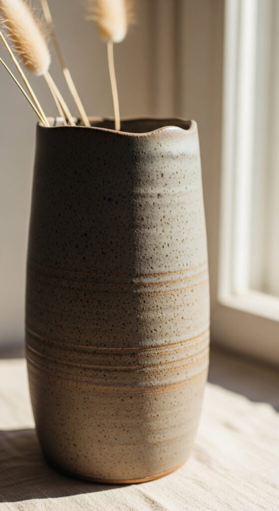 A hand-thrown stoneware vase is one of the most impactful single pieces you can add to a room. The uneven rim and slight lean tell you it was made by a person, not a machine. Look for vases with matte or satin glazes in neutral earth tones. These pair well with dried botanicals, which are cheaper than fresh flowers. You can find affordable options on Etsy or at local craft fairs for $25–$60. Place one on a console table or windowsill for instant warmth.