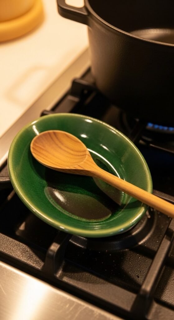 A handmade ceramic spoon rest is a tiny detail that signals care in a kitchen. It replaces a folded paper towel or the edge of the counter with something permanent and beautiful. Look for oval or leaf-shaped forms with a slightly concave surface so the spoon does not slide off. Glossy glazes in deep green, cobalt, or warm amber add color to a kitchen without overwhelming it. These are among the most affordable artisan pieces — $15–$30 — and they are fully functional. A great starting point if you are new to buying handmade.