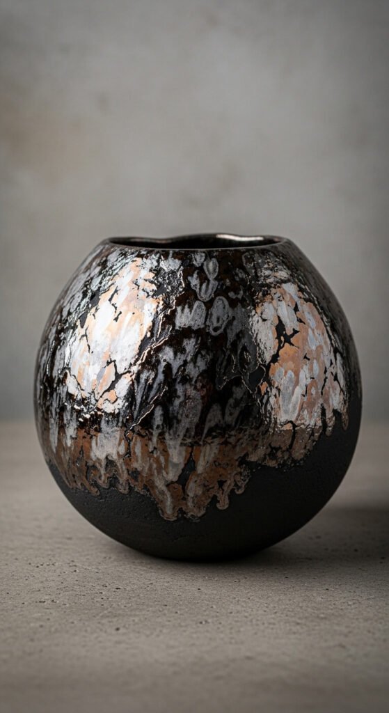 Raku-fired ceramics are among the most visually dramatic pieces an artisan can produce. The firing process — pulling pieces from a hot kiln and placing them in a smoke-filled container — creates unpredictable metallic and carbon-black patterns that are unique to every piece. No two raku vessels look alike. These make powerful statement objects on a mantelpiece or console. Expect to pay $50–$150 for original raku work. They are not for everyday use — just display — but they earn every bit of the attention they attract.