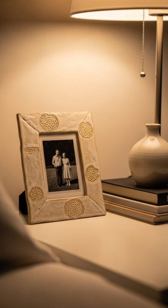 Ceramic picture frames are an underrated category of artisan decor. Most people display photos in mass-produced plastic or metal frames. A handmade ceramic frame — with its slight irregularity and tactile texture — gives a photograph more presence. Look for frames that lean rather than hang, which gives them a relaxed, personal feel. A standard 4×6 ceramic frame from an independent maker costs $30–$60. Use one for a meaningful photo on a nightstand or desk. It turns an everyday object into something worth noticing.