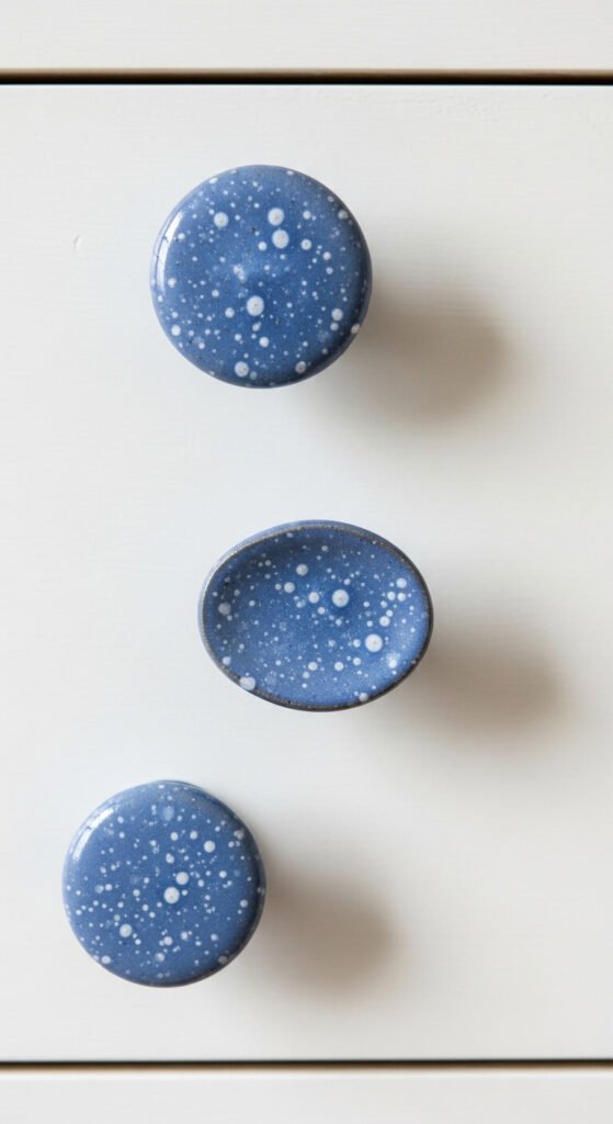 Ceramic cabinet knobs are one of the most affordable ways to introduce artisan quality into a kitchen or bathroom. Swap out standard hardware store pulls for handmade ones and the entire room feels more considered. Look for sets in consistent glaze colors — dusty blue, warm terracotta, or simple white with speckle. They do not need to be identical; slight variation within the same glaze palette works well. Individual ceramic knobs cost $8–$20 each from Etsy makers. Replacing just six or eight knobs on a cabinet can make a strong visual impact for under $100.