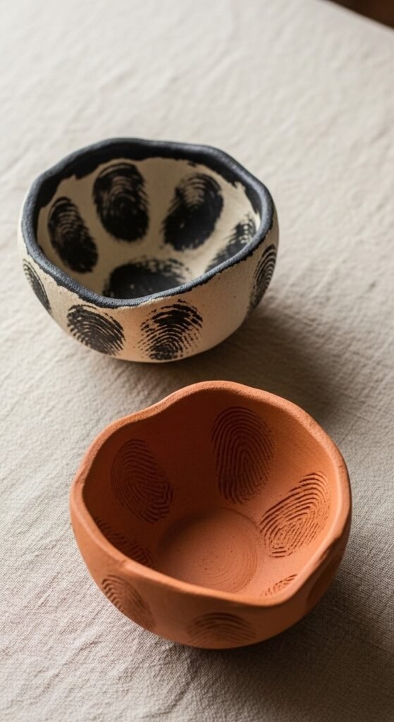 Pinch-built or coil-built bowls show the most direct evidence of the human hand. Every thumbprint, every slightly uneven wall — these are features, not flaws. Small pinch bowls work beautifully as jewelry dishes, salt cellars, or ring holders on a nightstand. Look for pieces with an unglazed or iron-washed exterior that shows off the clay body itself. These often cost less than wheel-thrown work — $15–$35 — because they do not require as much equipment. They are a great entry point for collecting handmade ceramics on a tight budget.