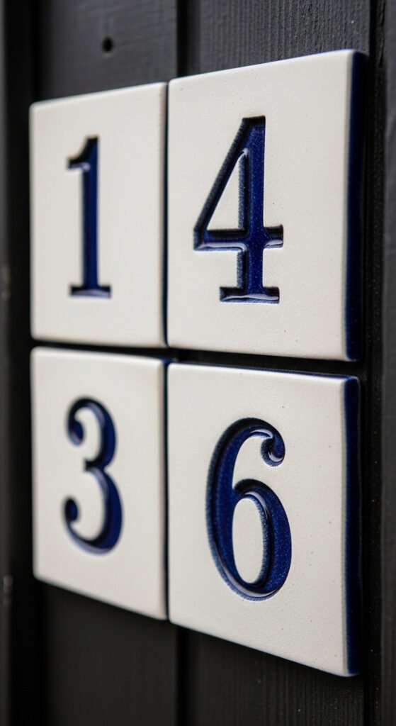 Ceramic letter or number tiles add a personal, artisan touch to exterior walls, kitchen spaces, or studio shelves. House numbers carved and fired in ceramic are especially compelling — far more interesting than standard aluminum numbers. Look for tiles where the letters or numbers are carved rather than painted on, so the design is integral to the clay. An independent ceramic artist can make custom tiles to order, usually for $25–$50 per tile. A set of four house numbers costs roughly $100–$200 and lasts indefinitely outdoors in most climates.