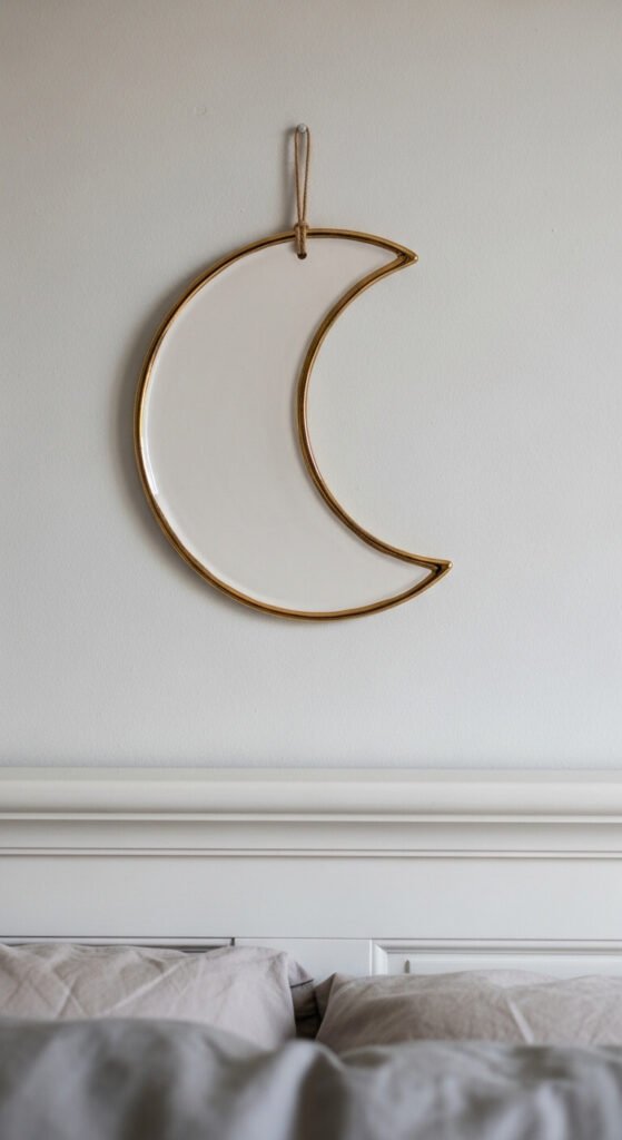 Ceramic moon and celestial wall pieces have become one of the most popular forms of artisan home decor, and for good reason — they are simple in form, meaningful in symbol, and beautiful in almost any space. Look for crescent or full-moon forms in matte white or natural terracotta. A thin gold luster rim adds warmth without looking overdone. These hang flat against a wall on a simple loop of twine. Prices range from $25–$70 depending on size and detail. Place one above a bed, a desk, or on a gallery wall as an anchor piece.