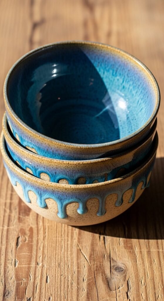 A ceramic bowl made for display is both decorative and functional. Set one on a coffee table to hold keys, crystals, or seasonal items like pine cones. Choose a bowl with a reactive glaze — those swirling blue-to-amber or green-to-brown effects happen naturally in the kiln and cannot be faked. These bowls feel substantial and grounded. At craft markets, beautiful display bowls start around $30–$50. Look for ones with a wide, flat base so they sit stable without a stand.