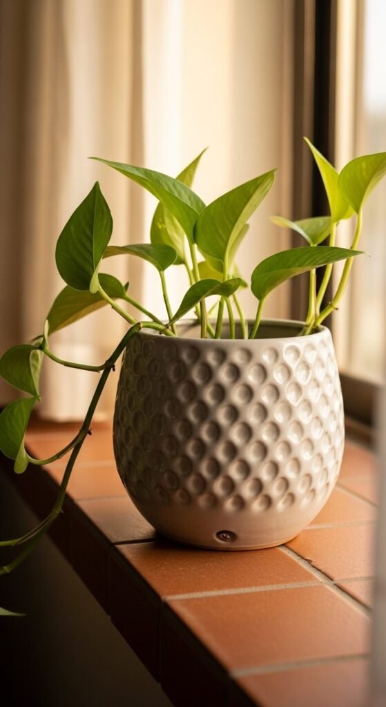 Ceramic planters made by hand have texture and weight that plastic pots simply cannot match. The clay breathes better too, which most plants prefer. Look for planters with a drainage hole or a removable plug — this is a sign the potter thought about actual use, not just appearance. Dimple textures, thumb-pressed patterns, and sgraffito lines are common details that add character. Prices start around $20 for small planters. A trailing plant like pothos or string of pearls looks especially good in a simple stoneware pot.