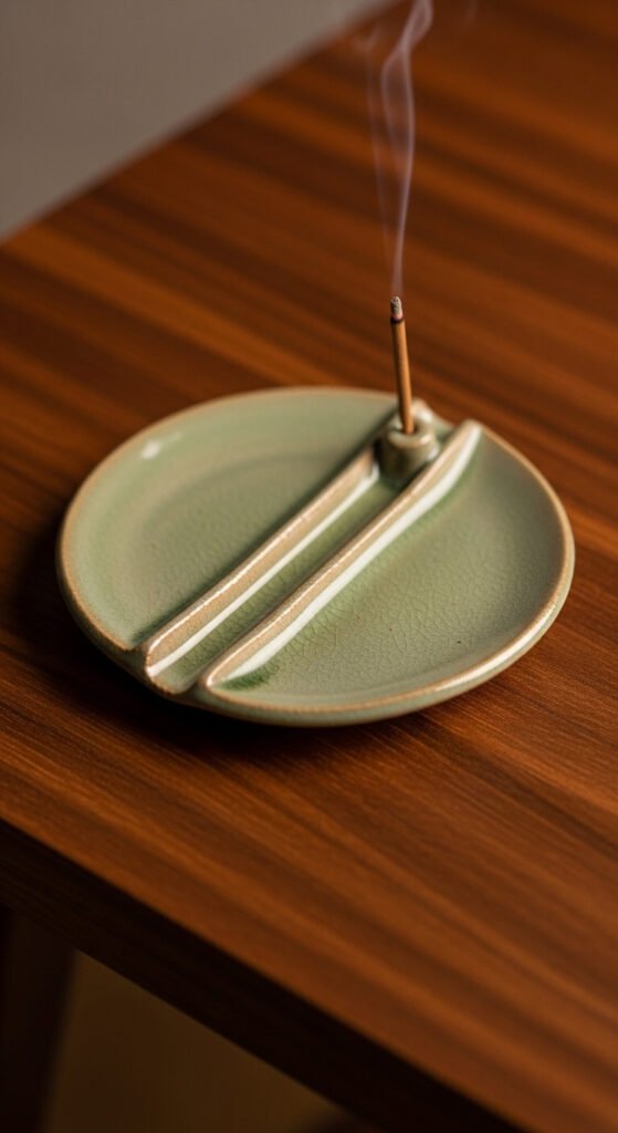 A ceramic incense or oil diffuser piece brings scent into your space while looking good on any surface. Small and functional, these are among the most affordable artisan ceramic items — often $15–$30. Look for pieces with a carved channel or small perforation that holds an incense stick upright. The glaze matters here: matte finishes in sage, charcoal, or warm terracotta tend to photograph and display beautifully. These make great gifts too. Place one on a side table or bathroom vanity for a calming, spa-like corner.