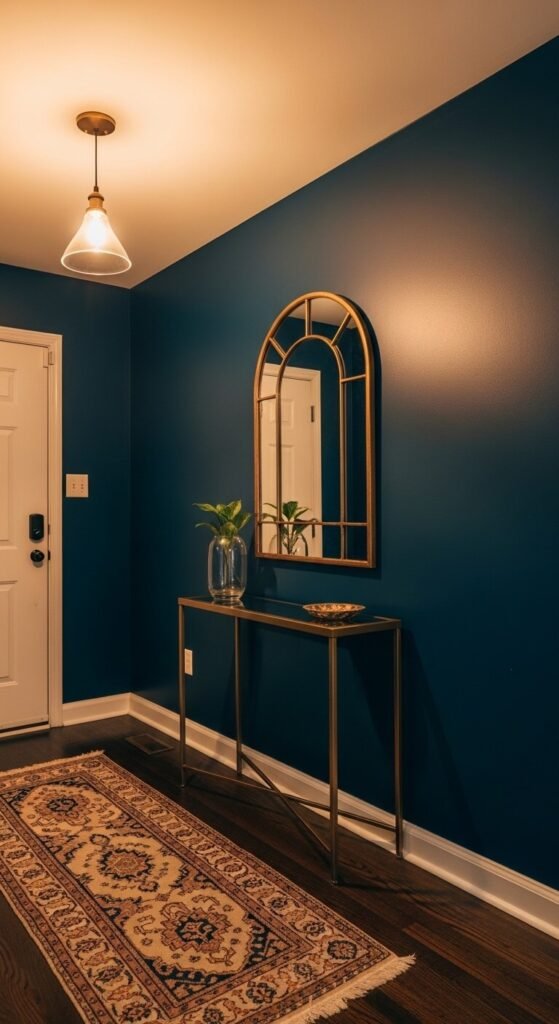 Light, neutral walls are safe — but a dramatic dark wall color in an entryway creates a bold, unforgettable first impression. Navy, charcoal, forest green, or deep terracotta make the space feel intimate and intentional rather than small and neglected. Dark colors also hide scuffs and marks better than white. A quart of paint covers the average small entryway for $20–$35. Pair it with warm lighting and natural materials to keep the space feeling welcoming rather than cave-like.