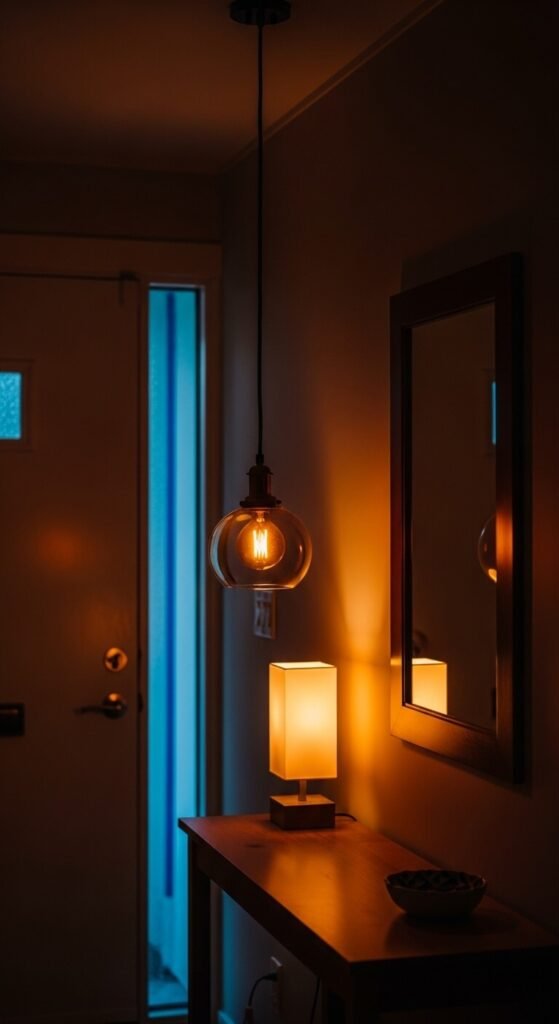 Lighting shouldn’t be all-or-nothing. Installing a dimmer switch on your entryway fixture lets you set the mood — bright and functional during the day, soft and welcoming in the evening. Dimmer switches cost $10–$20 and replace a standard switch in about 15 minutes. Make sure your bulb is dimmable (most LED bulbs are labeled as such). A layered lighting setup — pendant plus table lamp, both on dimmers — gives you complete control over the atmosphere the moment someone walks through the door.