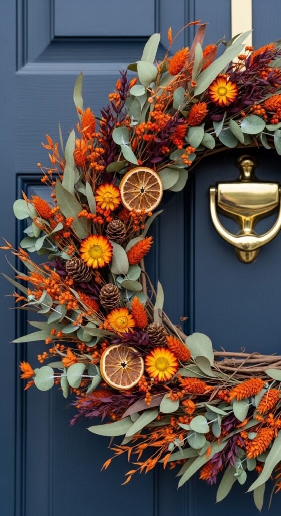 A seasonal wreath is the simplest way to show that a porch changes and is cared for throughout the year. Make your own from a grapevine or wire base — fresh or dried flowers, greenery, pine cones, berries, and ribbon are all you need. A basic wreath base costs $3 to $8 at a craft store. Foraged materials from your own yard — seed heads, branches, dried grasses — cost nothing. Change the wreath four times a year — spring blooms, summer greenery, autumn harvest tones, winter evergreens — and the porch always looks current. Handmade wreaths also look far more personal than anything bought ready-made.