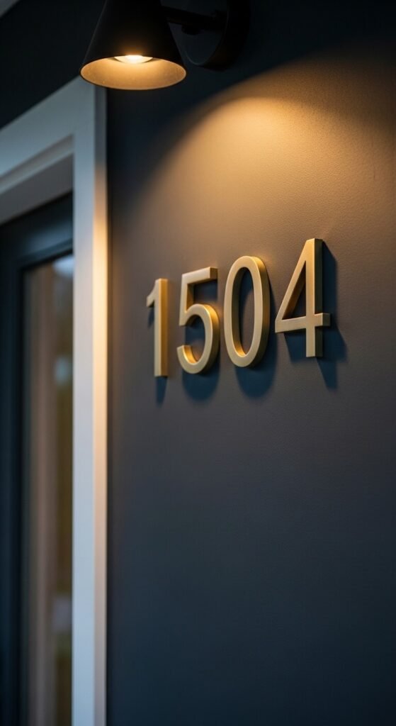 Address numbers are a small porch detail that most people overlook — but the right ones add real polish to an entrance. Large, bold numbers in a material that contrasts with your wall color are both functional and visually strong. Brushed brass on a dark wall, matte black on white render, or polished chrome on brick all look intentional and modern. Individual metal house numbers cost $5 to $15 each from hardware or home décor stores. Mount them at eye level beside the door, spaced evenly with a level. Replace builder-grade plastic numbers immediately — they are almost always too small and the wrong finish.