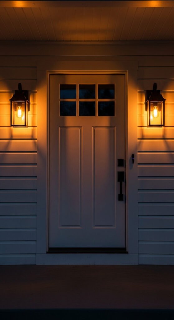 22. Outdoor Lantern Sconces Flanking the Door