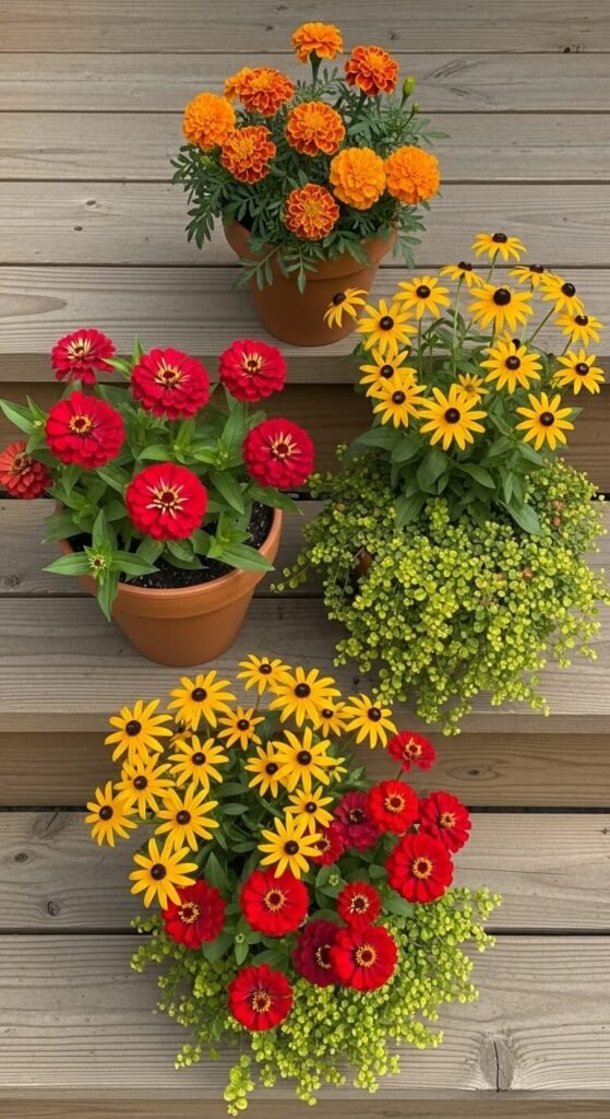 5. Potted Seasonal Flowers in a Color Palette