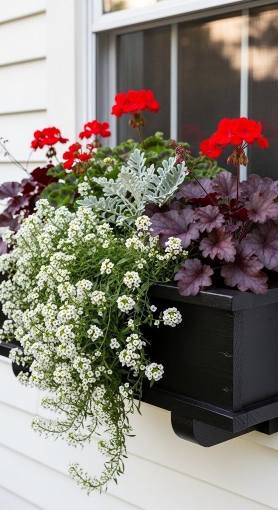 7. Window Boxes Filled with Mixed Plantings