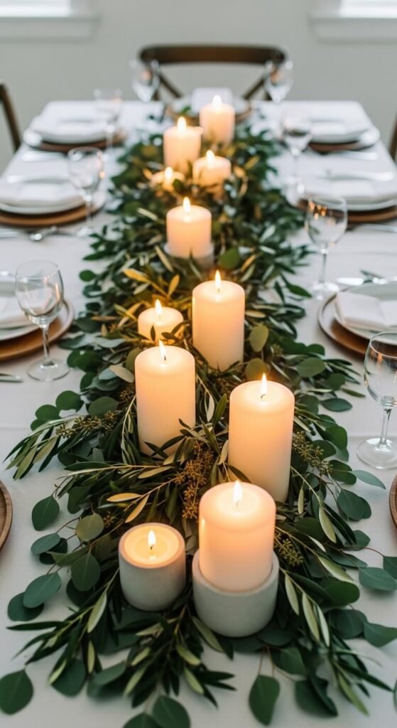19. Tablescape Candle and Greenery Runner