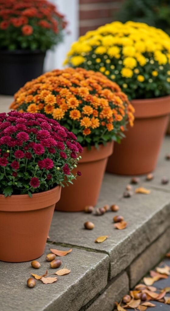 18. Add Terracotta Pots of Mums to Your Outdoor Spaces