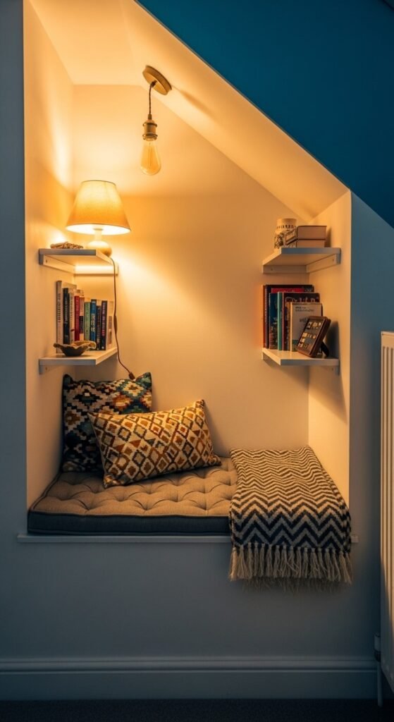 20. A Reading Nook Built into a Tight Space
