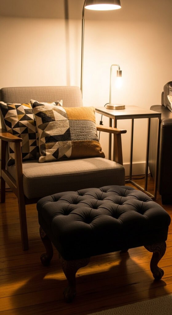 Turning a dead corner, alcove, or under-stair space into a reading nook is pure eclectic thinking. It’s not in any rulebook — you just decide that small space deserves a personality. Paint the inside of the nook a different color from the rest of the room. Add a cushion cut to fit the bench or floor for $20 to $50. Mount one or two small shelves above for $15 to $30 in materials. Hang a small pendant light or clip-on reading light. The contained space makes the bold color and pattern choices feel right in a way they might not in a larger room.