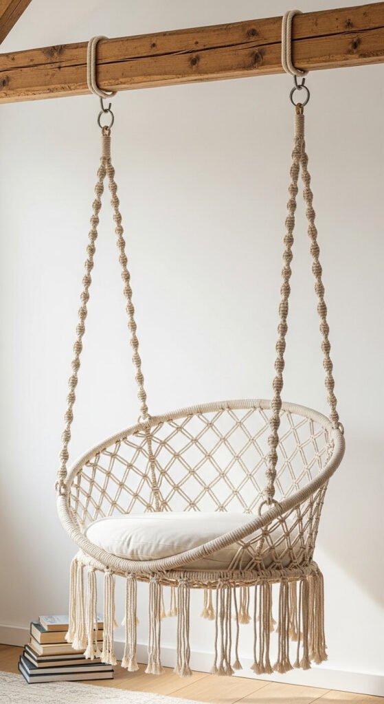 2. Macrame Swing Seat for a Reading Nook