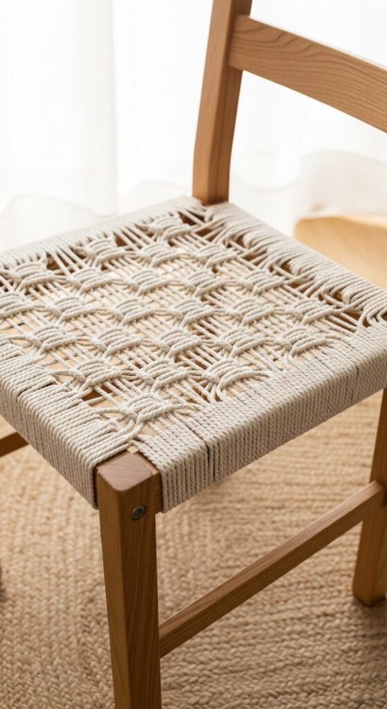 25. Macrame Woven Seat for a Plain Chair