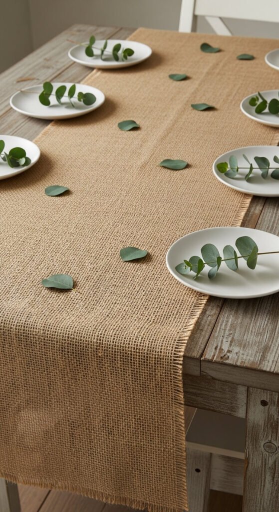 Burlap fabric costs $3-$6 per yard. The rough texture and natural tan color add organic warmth. Use it sparingly—too much feels scratchy and overwhelming.