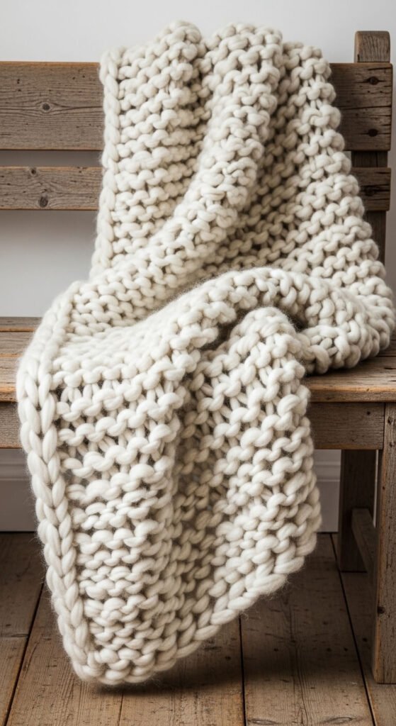 Chunky knit blankets run $60-$150 for large ones. DIY versions using arm knitting or giant needles cost $40 in yarn. The oversized stitches add incredible texture.