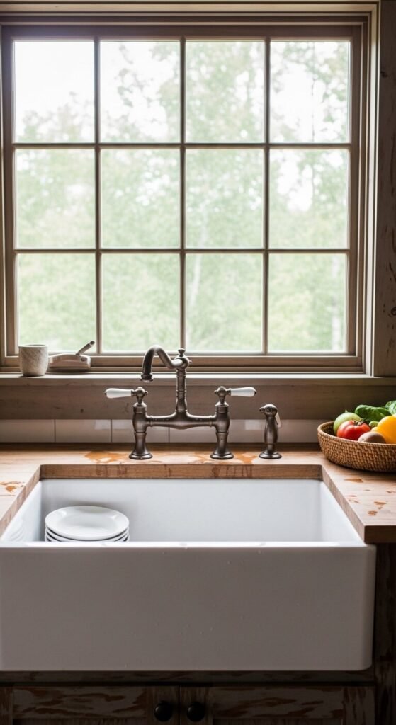 The large single basin handles big pots and sheet pans easily. The exposed front eliminates the cabinet door below—easier counter access. Install requires cabinet modifications, so budget for that. Pair farmhouse sinks with wooden countertops or butcher block. Bronze or black faucets complement the rustic look better than chrome. The sink becomes a focal point, so keep surrounding areas simple. Rustic kitchen centerpiece that’s actually more functional than standard sinks. Worth the investment if you’re renovating.