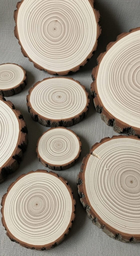 Sand smooth and seal with polyurethane. Four slices become coasters. Larger slices work as trivets under hot dishes. Mount slices on walls in clusters for organic art. Write on them with wood-burning tools or paint. The growth rings and natural variations make each piece unique. Wood slices bring literal nature into your decor. They’re conversation starters and functional items. DIY projects with kids are easy too. Just branches, a saw, sandpaper, and finish.