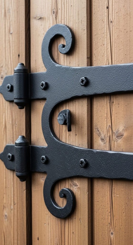 Replace builder-grade hardware with wrought iron pieces. Door handles, cabinet pulls, and curtain rods in black iron run $8-$25 per piece. The upgrade is affordable and dramatic.