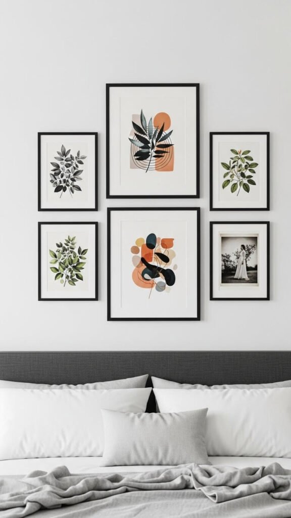 Blank walls waste opportunity. Gather 5-9 frames in matching color but different sizes. Print art from Etsy or use family photos. Lay your arrangement on the floor first, then measure and mark walls with painter’s tape. Keep spacing consistent at 2-3 inches between frames. Center the collection over your bed. Black frames look cohesive with any decor style. Command strips work for lightweight pieces—no holes required. Change prints seasonally to keep things interesting.