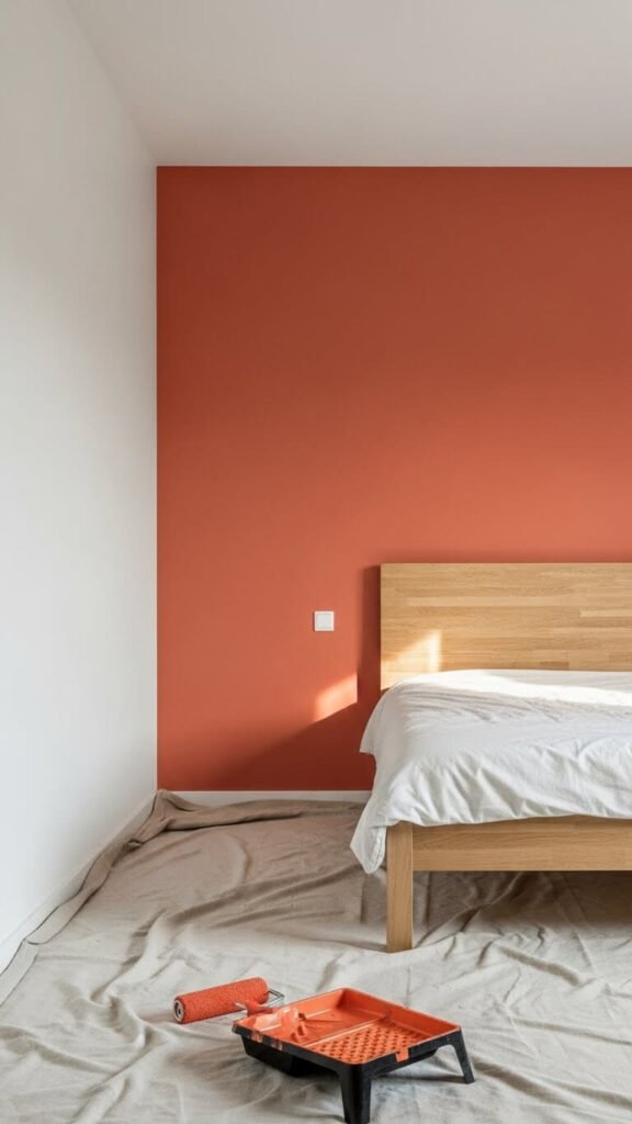 One colored wall transforms the space. Choose the wall behind your bed for maximum impact. Dusty blue, sage green, or terracotta work in most rooms. Buy sample pots ($5 each) and test patches before committing. Use painter’s tape for crisp lines. Apply two coats for even coverage. Accent walls require only one gallon of paint—budget-friendly at $30. Skip busy patterns if you’re renting. This weekend project changes everything.