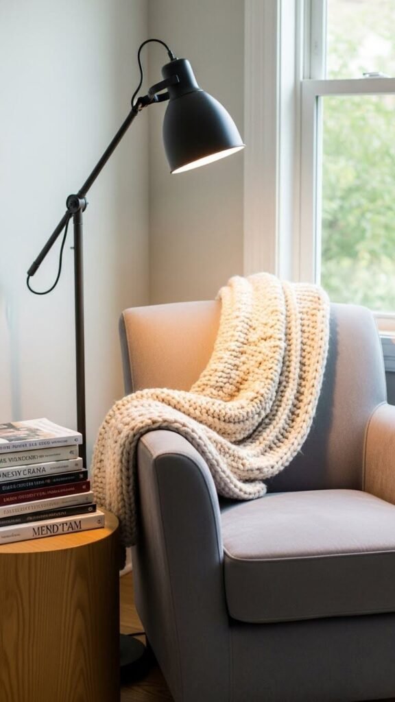 Every bedroom deserves a retreat spot. Place a comfortable chair near a window with a small table and lamp. Facebook Marketplace has chairs for $20-50. Add a throw blanket and pillow. This becomes your morning coffee spot or evening reading corner. Position the lamp behind your shoulder to prevent glare on pages. A basket beside the chair holds current books. This dedicated space encourages you to actually relax.
